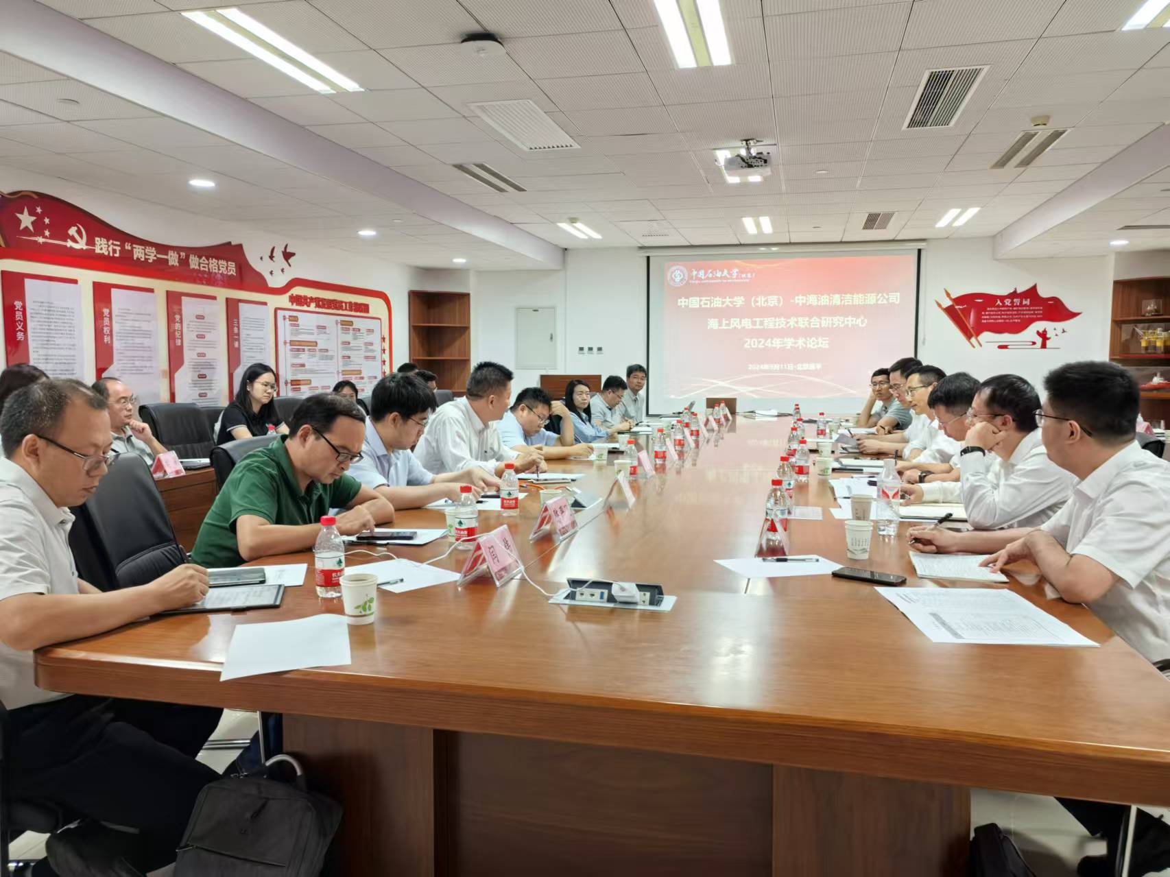 中海油能源股份有限公司清潔能源分公司黨委副書記、副總經(jīng)理張建勇、副總經(jīng)理魏昊、副總經(jīng)理饒偉及風電項目、管道技術(shù)項目、CCUS項目的首席工程師等8位部門領(lǐng)導參會,我院張來斌院士、科學技術(shù)處副處長郭慧和來自安全與海洋工程學院、非常規(guī)油氣科學技術(shù)研究院、碳中和未來技術(shù)學院等多個學院教師參會。