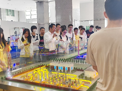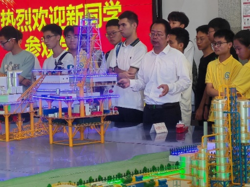 朱益首先對同學們的到來表示熱烈的歡迎,隨后對教學演示中心作了整體介紹,重點講解了海洋平臺的類型、功能以及海底管道的鋪設,并結合測井系統模型,介紹了測井的基本內容和方法。然后圍繞“天然氣長輸管道一體化沙盤”,講述了長輸管線的基本流程和“穿跨越”工藝以及城市燃氣輸配工藝流程和重要作用。
