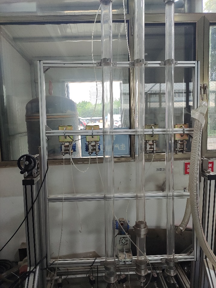 可提供的實驗條件: 直井以及各種角度的斜井在定液壓情況下,不同氣體壓力下的井筒內流形觀測,井筒上下壓差,井下壓力;以及帶氣嘴的井筒內流形模擬實驗。