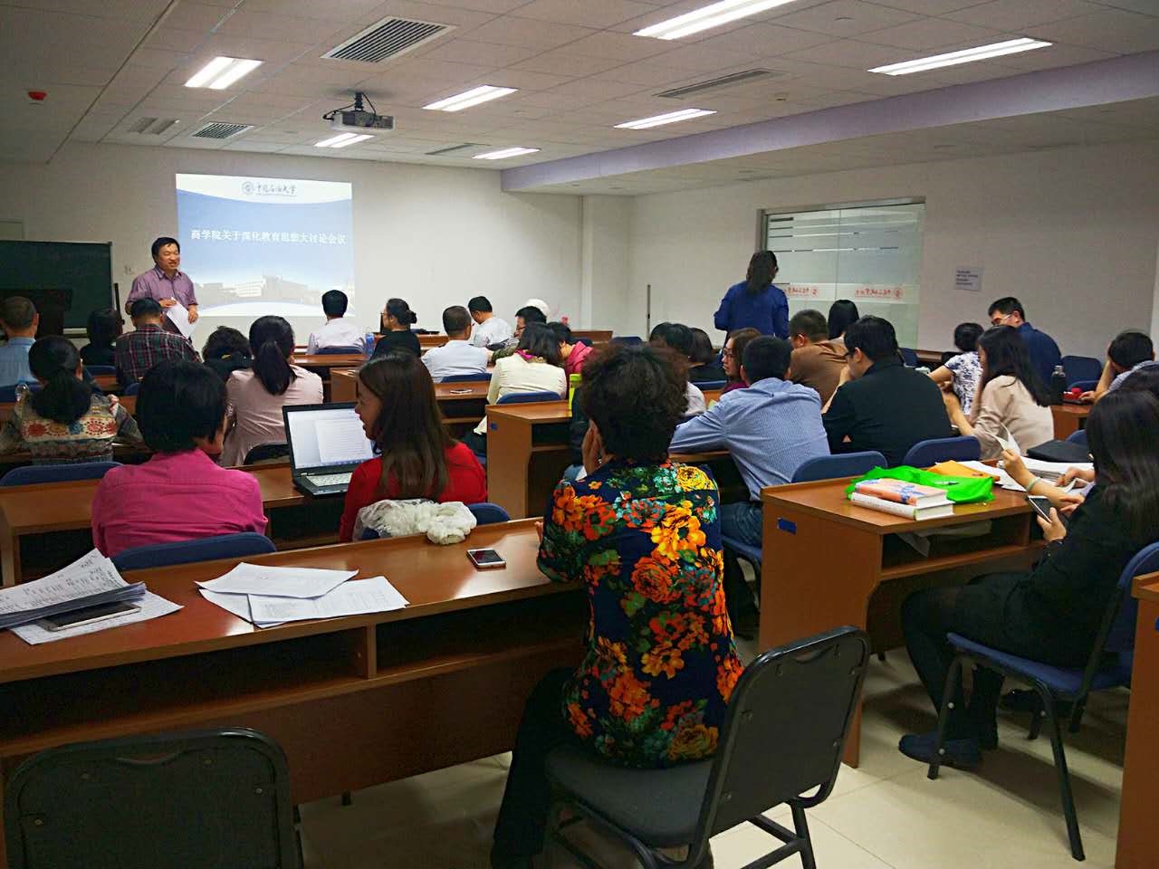 為積極響應學校要求,進一步深化教育教學綜合改革,繼續推進教育思想大討論,更好迎接本科教學工作審核評估,工商管理學院于2017年5月4日下午2:30在主樓B座1118會計手工實驗室組織召開“教育思想大討論——本科教學改革思路專項討論”會議。本次會議由郭海濤院長和沈慶寧教學副院長主持,全體教師參加。