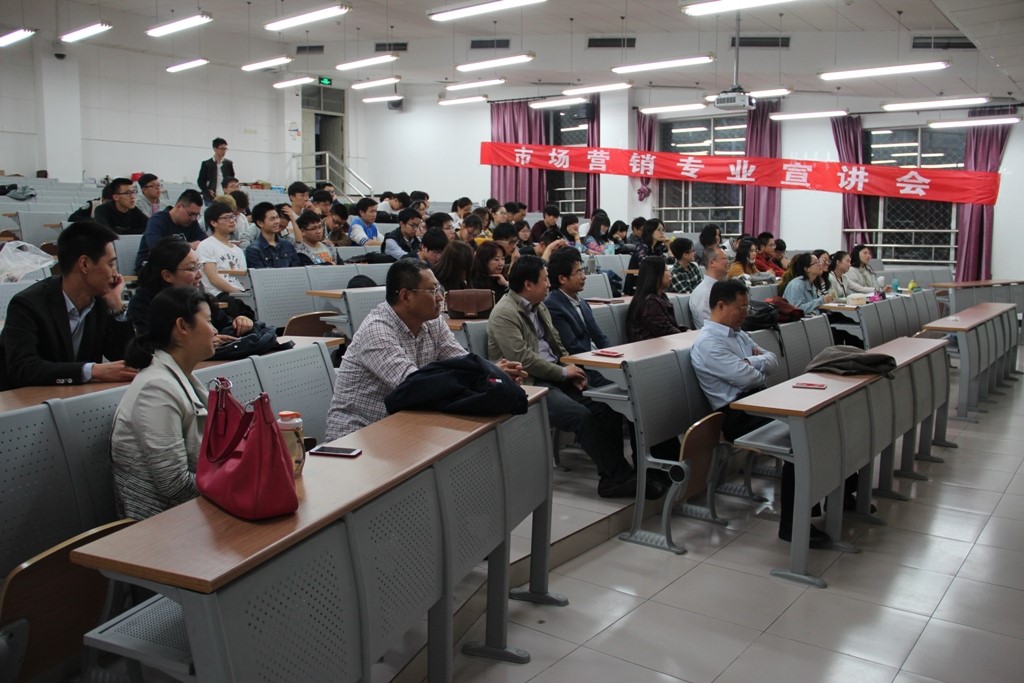 2017年4月25日,工商管理學院院領導和市場營銷專業全體教師在三教105教室為學生開展了專業宣講。會議由市場營銷專業負責人鄧秀煥老師主持,工商管理類專業2015級和2016級部分學生參會。