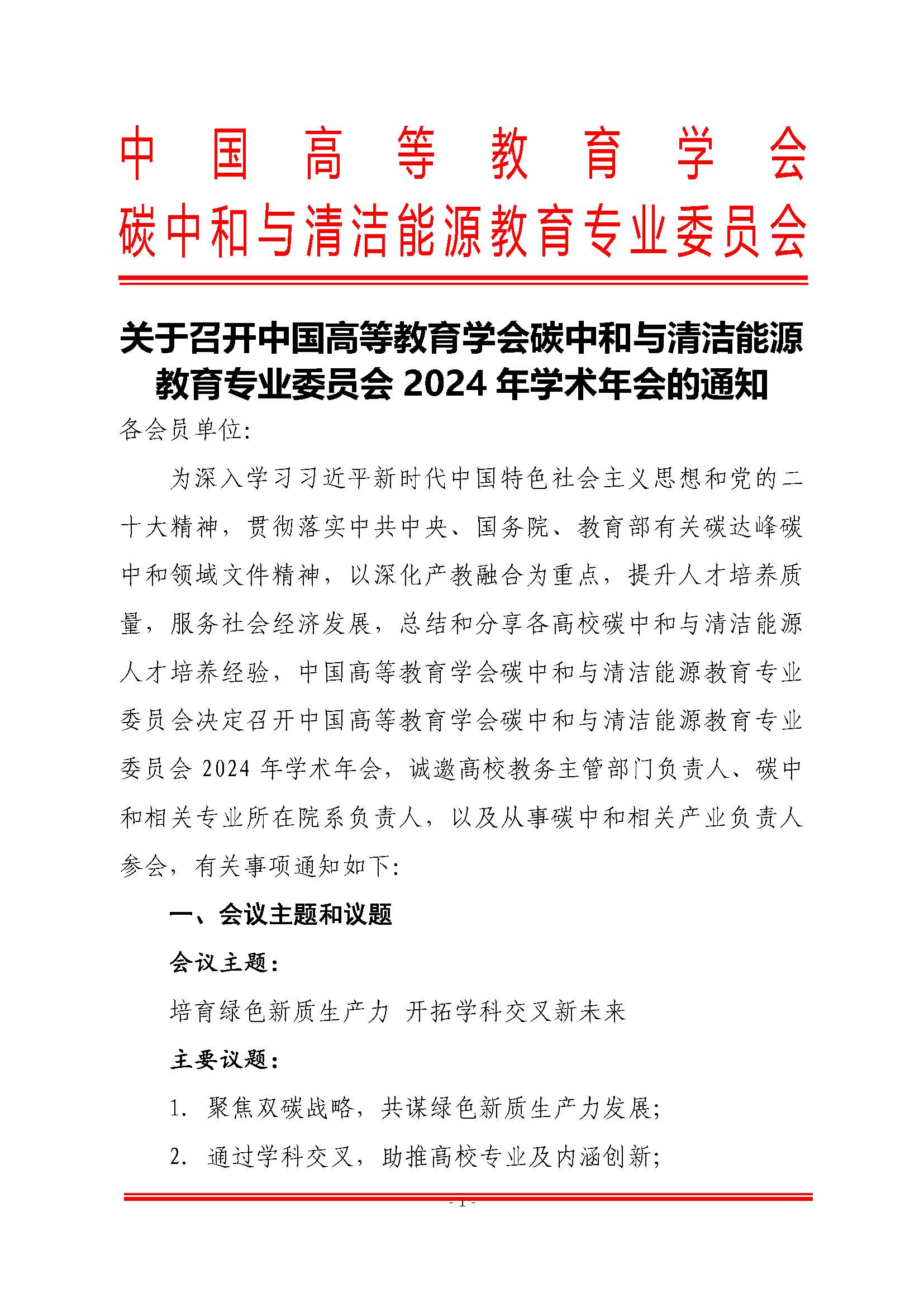 關于召開中國高等教育學會碳中和與清潔能源教育專業委員會2024年學術年會的通知