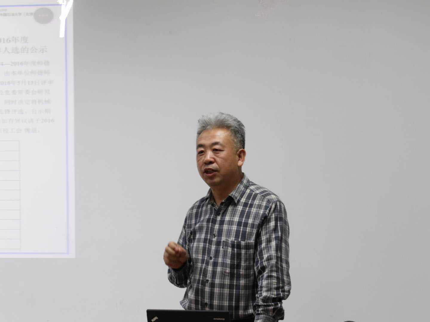 張仕民以師德師風為主題,闡釋了科研過程中要遵循王國維治學三境界,講解了如何在教學和科研的過程中滲透“做人、做事、做學問”的思想,并通過展示對青年教師的培養方法和教學成就,分享了自己的教學方法和教學心得,呼吁老師們積極弘揚社會主義道德和中華傳統美德。