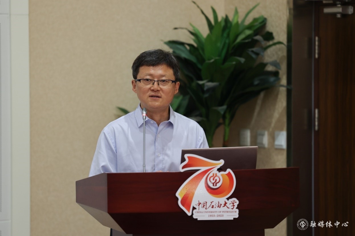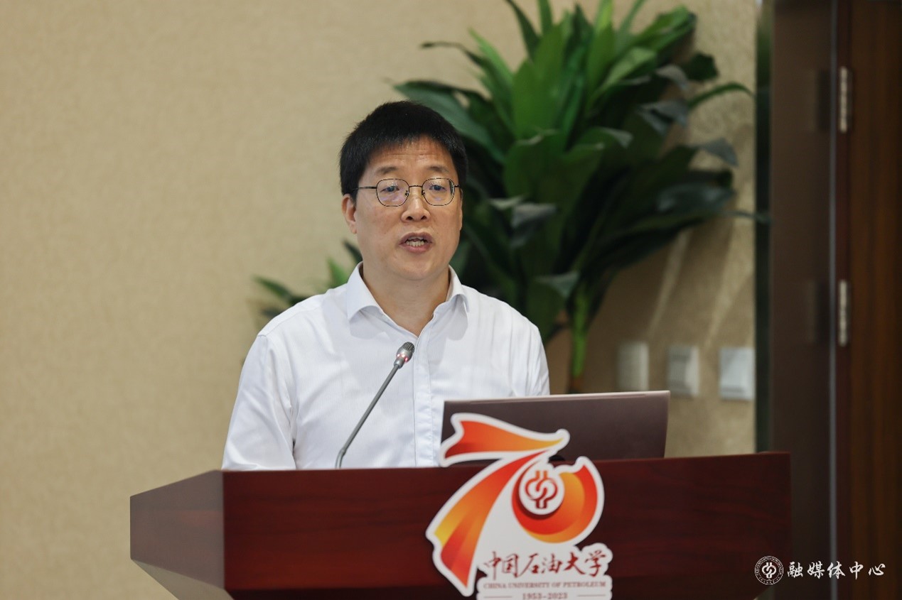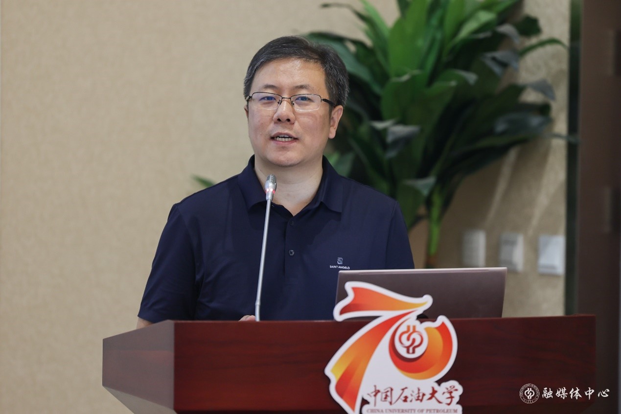 能源金融業界杰出校友褚玦海致辭。他表示,中石大的能源金融學科應注重油氣傳統能源及新能源衍生品的研究,研究如何在能源金融市場發展的基礎上,研究解決國家能源供應安全問題。
