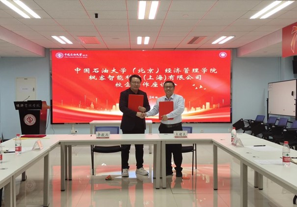 情況介紹完畢后,雙方代表就雙方合作進行了深入的交流,對具體合作細節進行了討論和協商。最后,中國石油大學(北京)經濟管理學院院長王建良與楓客智能科技(上海)有限公司總裁李毅兵簽署了《戰略合作框架協議書》。
