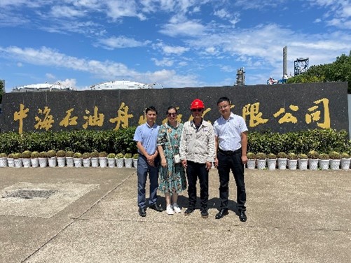 此外,孫竹教授一行參觀了中海石油舟山石化有限公司,與總經理趙培江進行了座談。會上,孫竹教授介紹了我校能源金融學科建設和學生培養,以及政產學研合作情況,聽取了中海石油舟山石化關于能源化工產品的生產、銷售、市場的經驗介紹,并向中海油長期以來對我校金融系的大力支持表示感謝,希望雙方繼續加強合作交流,推動產學研的共同發展。