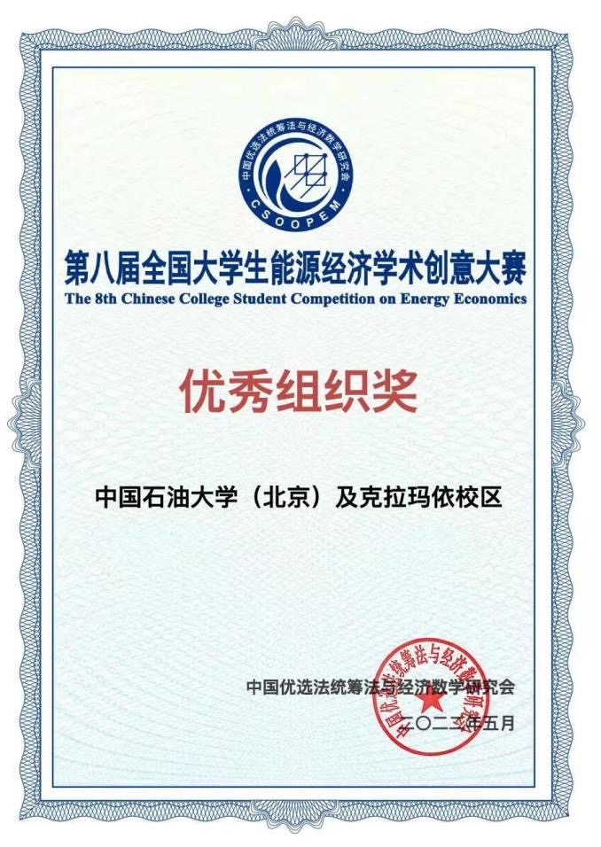中國石油大學(北京)榮獲第八屆能經(jīng)大賽優(yōu)秀組織獎