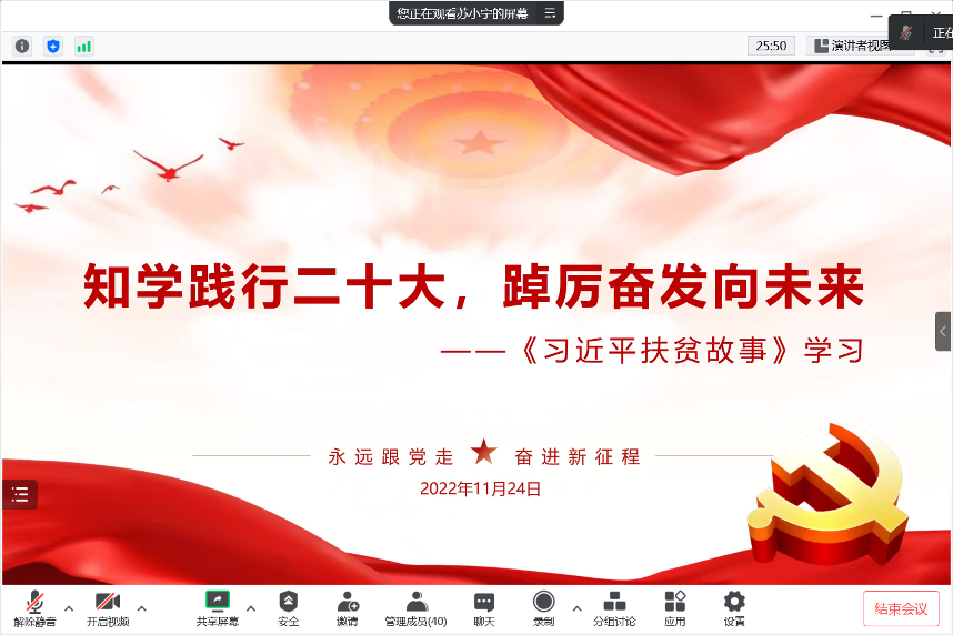 11月24日,為學習踐行二十大精神,進一步推動學習型黨支部建設,學黨史,悟思想,厚植愛國情懷,經濟管理學院組織師生支部共同開展“知學踐行二十大,踔厲奮發向未來”讀書交流主題黨日活動。