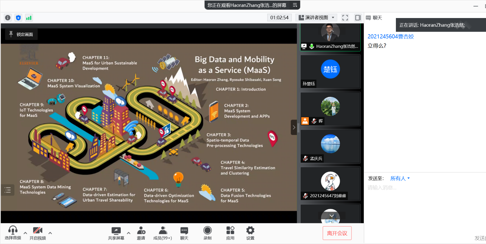 報告結束后,張浩然研究員與師生圍繞智慧城市系統建模和期刊投稿等問題進行了熱烈的討論交流。趙曉麗副院長總結發言,她認為陳教授的報告為我院在“雙碳”背景下開展大數據驅動的城市能源轉型研究提供了寶貴經驗。