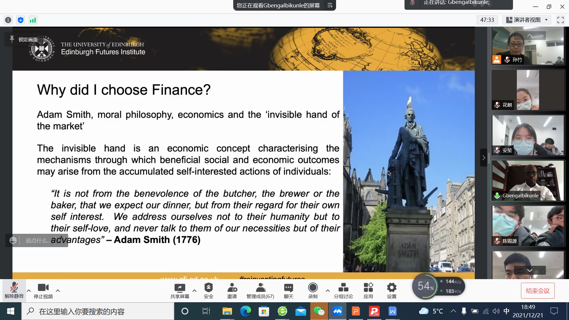愛丁堡大學(xué)Gbenga教授為我校經(jīng)濟(jì)學(xué)新生做線上講座