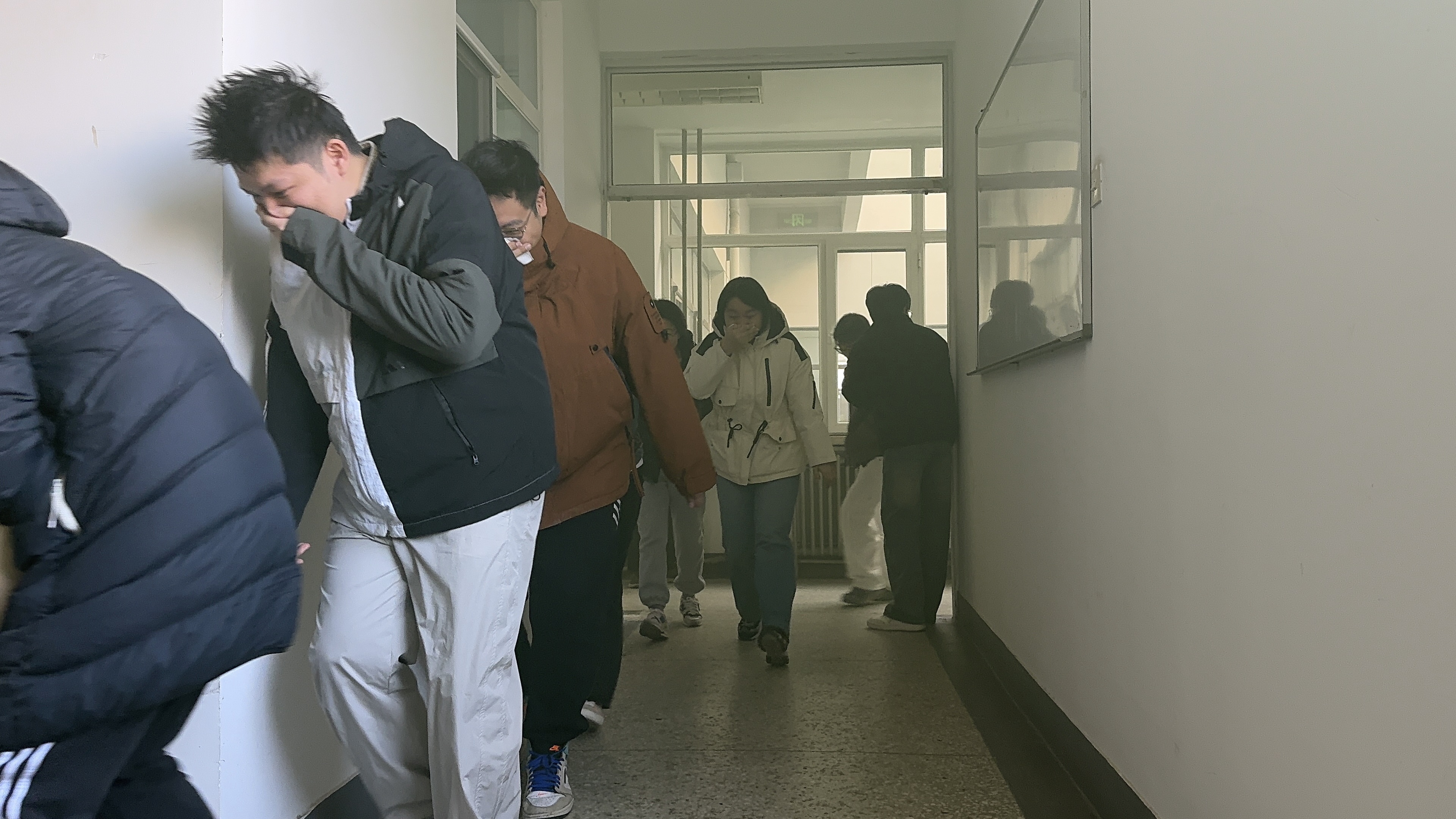 演練模擬理學(xué)樓B座因線路老化引發(fā)火災(zāi)的場景。隨著樓內(nèi)火災(zāi)報警聲響起,各樓層師生在引導(dǎo)員的指揮下,迅速采取應(yīng)急措施:捂住口鼻、低姿行進,沿安全通道有序撤離。全體人員通過樓梯及出口迅速疏散至指定安全區(qū)域,整個過程組織嚴密、響應(yīng)迅速,達到了預(yù)期效果。