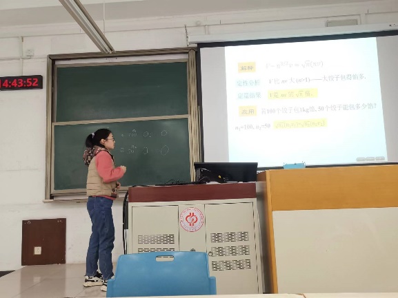 兩位主講教師都通過了多媒體與板書相結(jié)合的方式試講了《高等數(shù)學(xué)》課程。課前兩位教師精心設(shè)計(jì),細(xì)致編排;課中她們充滿激情,精神飽滿,語言生動,教態(tài)自然。鄭青青老師以“包餃子中的數(shù)學(xué)”作為數(shù)學(xué)建模的一個(gè)案例,深入挖掘本課程所蘊(yùn)含的教學(xué)元素和承載的思政教育功能。肖敏老師講授的高等數(shù)學(xué)的的內(nèi)容“函數(shù)的連續(xù)性”,通過教學(xué)實(shí)例生動形象地將學(xué)科知識做到飽滿展現(xiàn)。試講結(jié)束后,現(xiàn)場聽課教師從講課環(huán)節(jié)、內(nèi)容邏輯、課堂互動、教學(xué)方式、儀表儀態(tài)、課件制作等方面,對兩位教師進(jìn)行了細(xì)致點(diǎn)評,對改進(jìn)課堂效果提出了意見和建議。