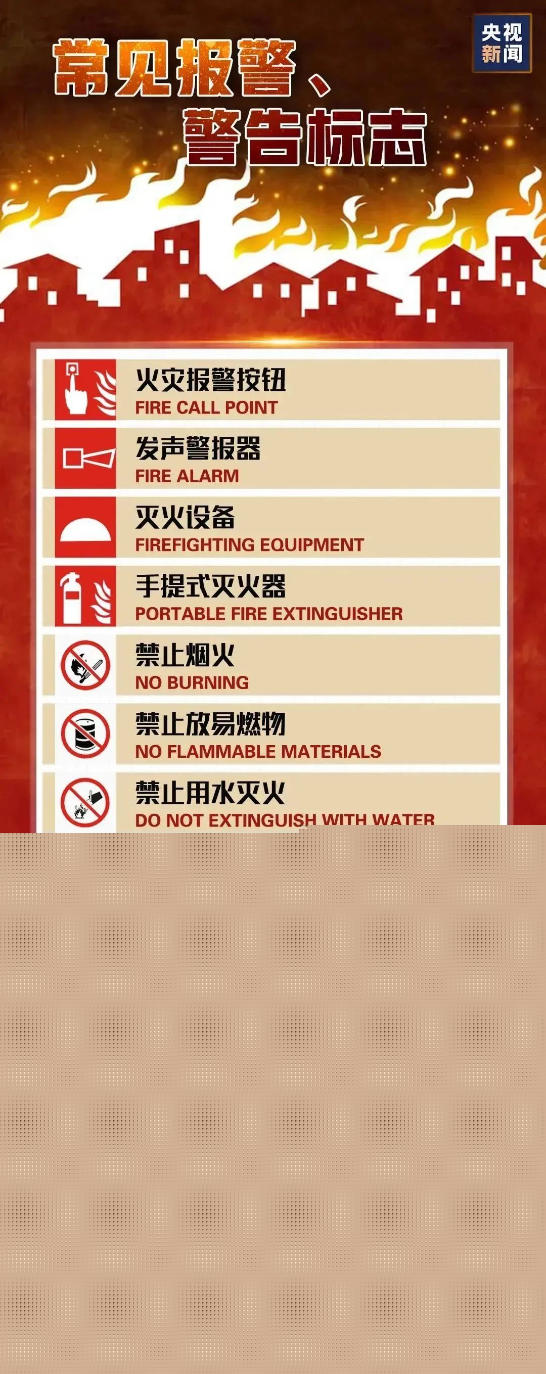 火災發(fā)生時的應對:(1)公共場所一般設有火災報警裝置,按下即可報警,有時需要打破玻璃,還要及時撥打119;(2)選擇逃生通道,不要乘坐電梯。當濃煙彌漫時,應冷靜觀察煙氣流動方向,順著同一方向,沿著墻壁,邊移動邊尋找出口;(3)逃生時,盡量低姿前進,不要深呼吸,盡可能用濕衣服或濕毛巾捂住口和鼻子;(4)在等待救援時,要待在容易被發(fā)現(xiàn)的位置,盡量防止火勢和煙霧蔓延到自己的所在地;(5)逃生時不可因害羞或貪財而浪費時間,已逃離險境的人員切莫重返險地。