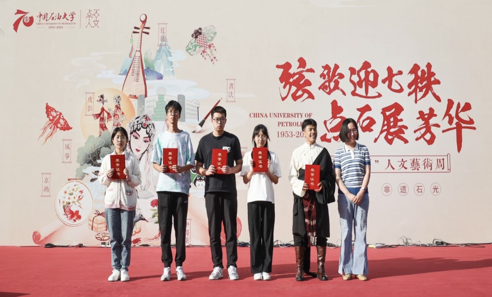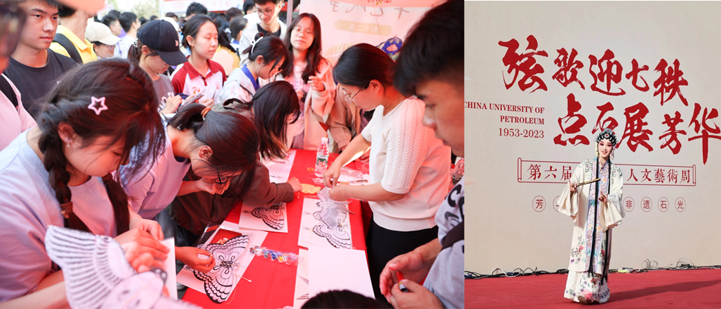 為傳承中華優秀傳統文化,在迎接學校70周年校慶之際,中國石油大學體育與人文藝術學院聯合學校多部門推出第六屆“點·石”人文藝術周“弦歌迎七秩 點石展芳華”“ 非遺石光,芳華守藝 ”活動,進一步涵養石大學子素養,渲染石大人文氛圍,堅定文化自信,讓中石大遇見非遺,共赴秋日之約。9月28日下午,“非遺石光,芳華守藝”活動在身披節日盛裝的校園內舉行。學校黨委副書記蒲俊霖,黨委宣傳部、黨委教師工作部、團委、體育與人文藝術學院等職能部門負責人、師生代表現場參加活動。