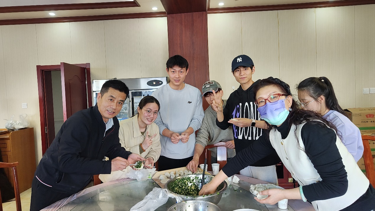 學院教師和體育研究生同學們在餐桌上一展身手,大家一邊包餃子一邊其樂融融地互相交流,在歡聲笑語中迎接新的一年。