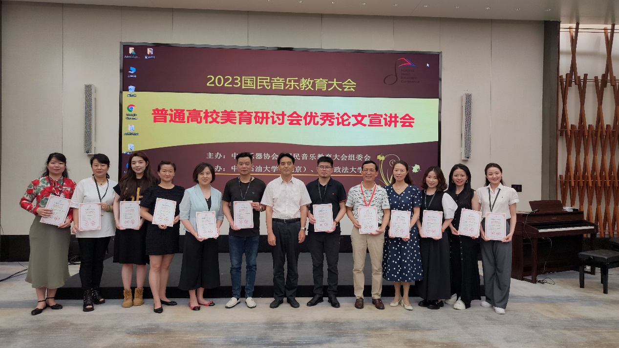 2023國民音樂教育大會于7月9-12在成都天府國際會議中心盛大舉行,來自國內外音樂界專家教授、美育工作者、音樂產業代表和音樂研究生一千多人齊聚蓉城,進行了深入、廣泛的交流。中石大美育教師團隊一行四人參加了本次大會,并應邀在普通高校美育研討會專場宣講論文。在論文宣講中,四位教師先后在研討會上分別從美育課程體系建設、課堂樂器教學、新媒體與思政教育、文體社團建設等角度介紹了自己的教學經驗、育人心得,并充分展示了我校的美育教學成果。研討會與會人員和兄弟院校美育教師對我校各位老師宣講的論文和中石大的美育教學成果表示贊賞和肯定。最后,研討會主持和點評專家、四川音樂學院黨委宣傳部部長雍敦全教授為宣講者們頒發了“優秀論文宣講證書”。