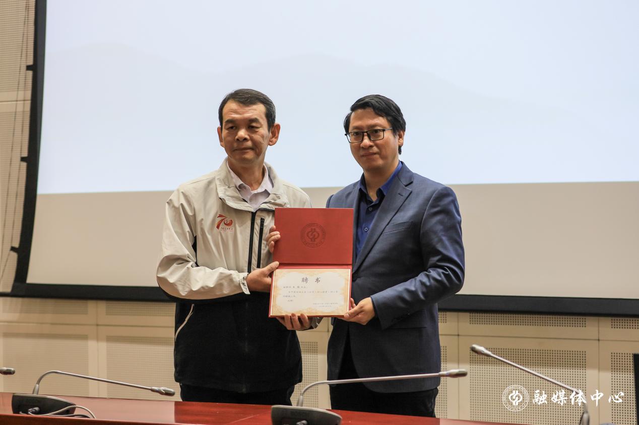 隨后,現(xiàn)場(chǎng)舉行“潤(rùn)心講堂”文化導(dǎo)師聘任儀式。作為以“以文化潤(rùn)心,以傳承聚力”為宗旨的校園文化平臺(tái),“潤(rùn)心講堂”現(xiàn)場(chǎng)聘任王銘為潤(rùn)心導(dǎo)師,教育學(xué)院專家組組長(zhǎng)饒勝文老師登臺(tái)為其頒發(fā)聘書(shū),全場(chǎng)掌聲雷動(dòng),為這一文化傳承紐帶的締結(jié)喝彩。