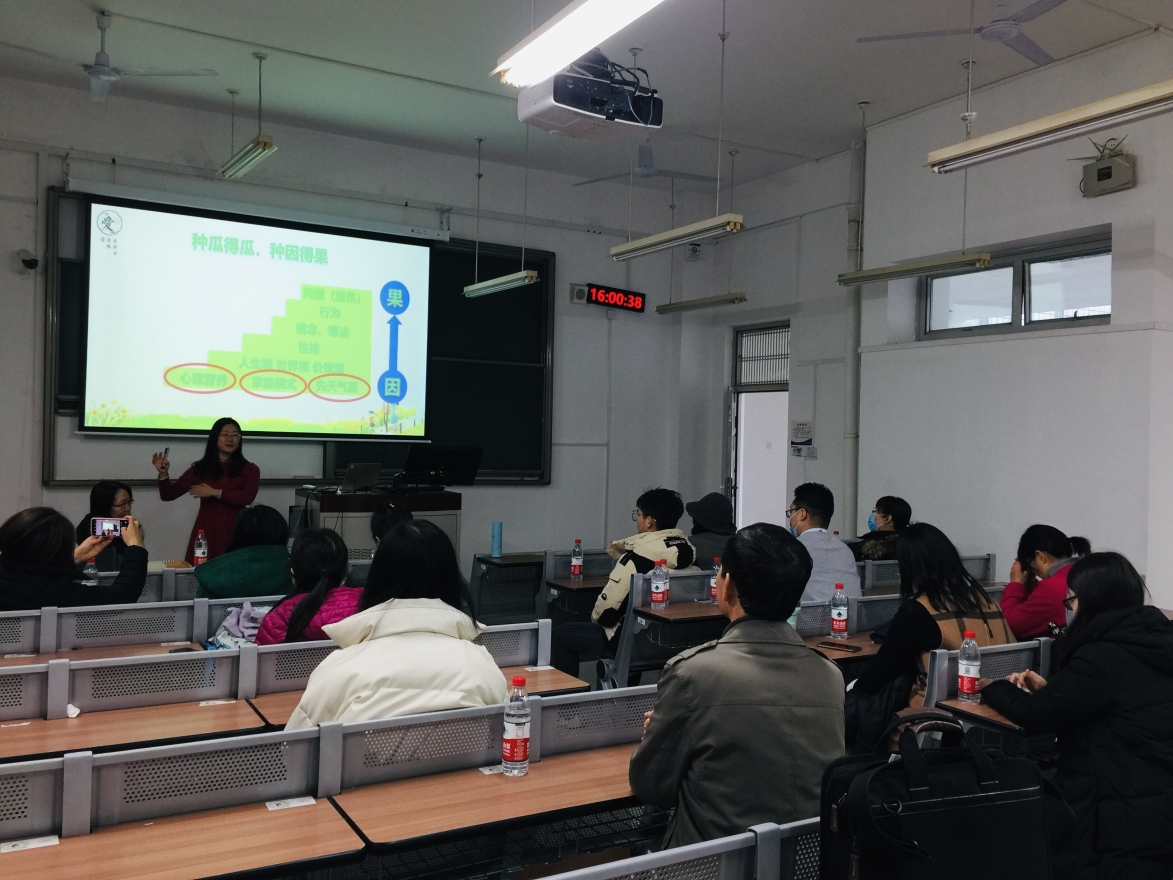 講座中,封虹丞院長分析了快樂工作、幸福生活的意義,解讀了如何和諧快樂生活的密碼——“愛”。快樂工作、幸福生活離不開有愛的家。封院長生動的互動環節演示了不同家庭模式對個人的心理成長的長遠影響。社員們領悟到了愛是教育的靈魂,愛學生就是愛工作,愛家就是愛國,家是最小國,國是千萬家。愛國愛家,要從工作和生活的點滴做起。