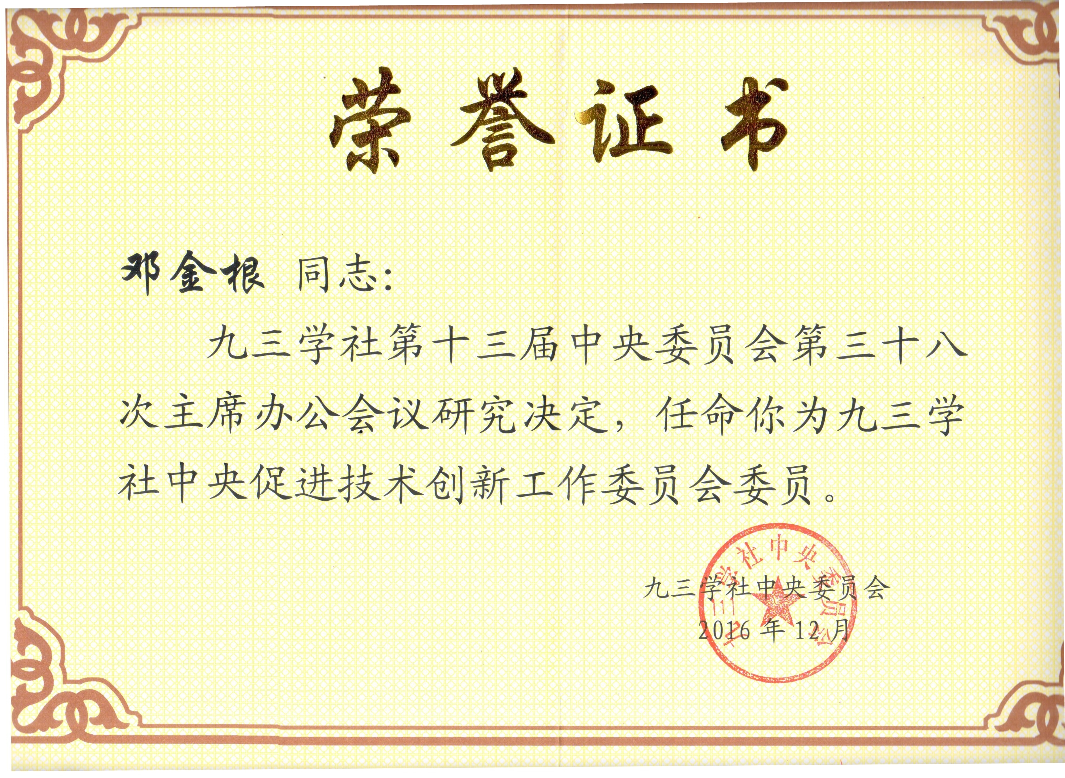 日,九三學社中央促進技術創新工作委員會成立大會在北京召開。九三學社社員、石油工程學院鄧金根教授被任命為九三學社中央促進技術創新工作委員會委員。