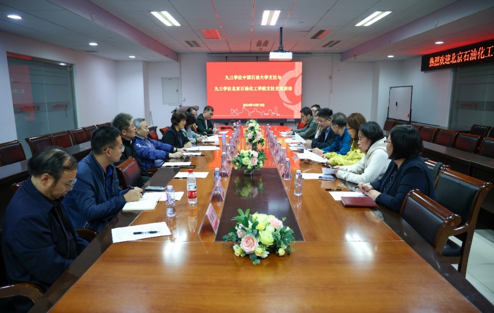 10月18日下午,九三學社北京石油化工學院支社主委戴玉華教授帶隊來我校開展座談交流,追述兩校支社淵源,暢談支社發展。雙方支社成員代表等近20人參與交流,活動由我校九三學社支社主委李永峰教授主持。