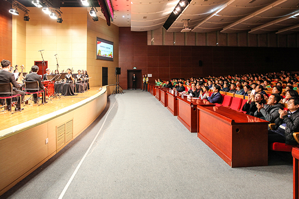11月23日晚,中國廣播藝術(shù)團副團長劉學(xué)俊、中國廣播藝術(shù)團民族樂團團長張高翔帶領(lǐng)中國廣播藝術(shù)團民族樂團做客石大,帶來了一場主題為“聆聽經(jīng)典”的音樂會。石大黨委書記山紅紅,校長張來斌,黨委副書記、副校長韓尚峰與石大以及石大附中、附小的800余名師生共同觀看了演出。