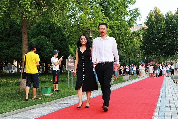 本屆紅毯禮分為“與君之恩”師生篇、“與君相見”特別篇、“與君相戀”愛情篇、“與君相遇”友情篇4個篇章。在師生篇中,各學院負責人攜畢業生代表依次走上紅毯并送上深情祝福,向圓滿完成學業的畢業生們表示祝賀,希望畢業生們發揚石大優良傳統,腳踏實地、努力工作、報效祖國、回報社會,在不同的工作崗位上創造屬于自己的精彩人生;在特別篇中,宿舍管理人員、食堂師傅、安保人員、校醫院醫生、圖書管理員等走上紅毯,引得現場觀眾的熱烈掌聲;在愛情篇中,畢業生情侶們或十指緊扣,或深情對視,展現了校園愛情的甜蜜與幸福;在友情篇中,閨蜜同行或同學相伴,面對即將作別的大學生活,他們不訴離殤,將最甜美的笑容留在了石大,定格在最美的青春里。