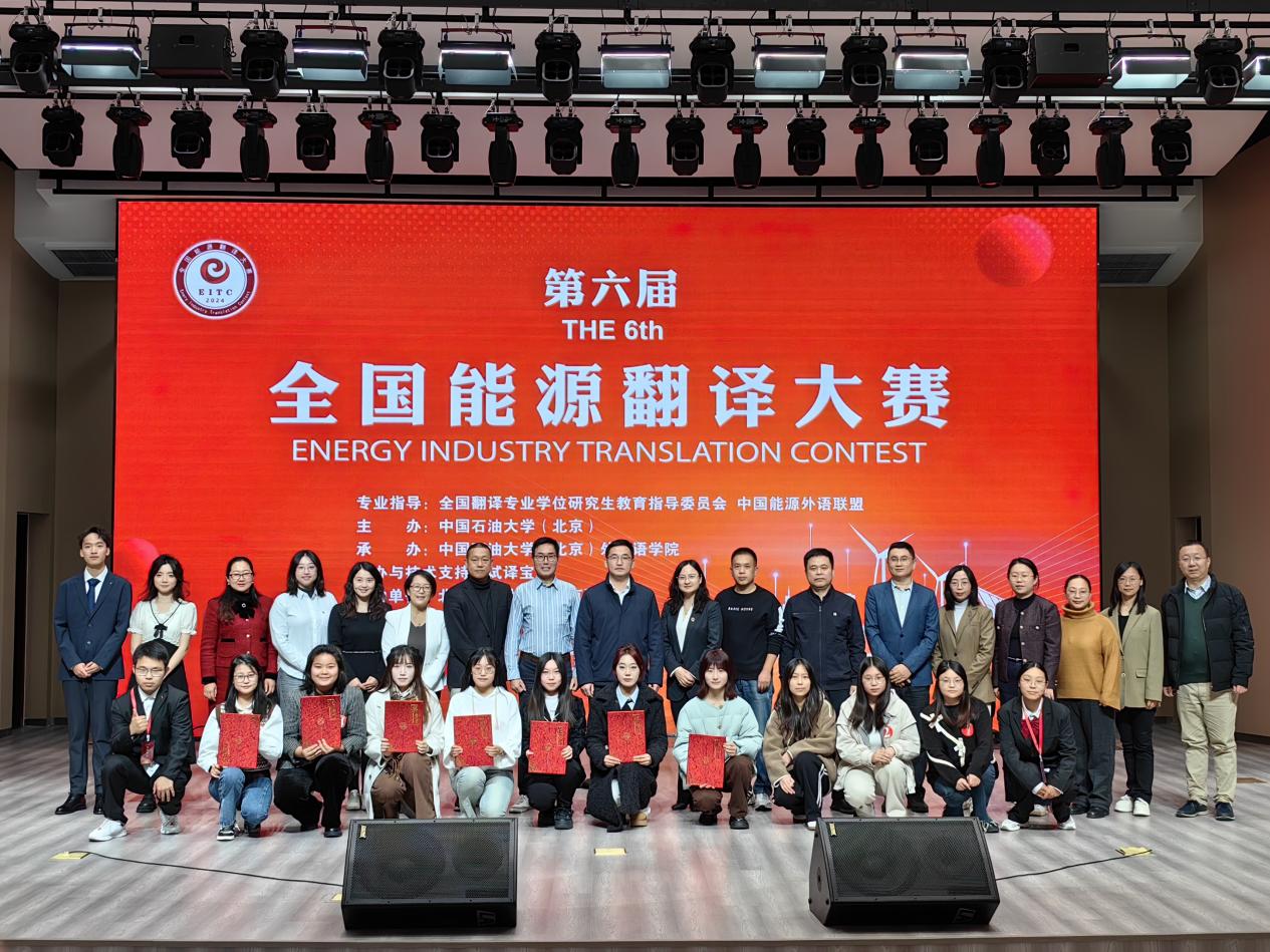 11月30日,第六屆全國(guó)能源翻譯大賽決賽在中國(guó)石油大學(xué)(北京)舉辦,中國(guó)石油大學(xué)(北京)王易伽、外交學(xué)院羅錦文、云南財(cái)經(jīng)大學(xué)高雨心獲一等獎(jiǎng),大賽還評(píng)選出二等獎(jiǎng)5名、三等獎(jiǎng)4名、優(yōu)秀獎(jiǎng)11名。學(xué)校黨委副書記蒲俊霖,北京郵電大學(xué)人文學(xué)院、北京藍(lán)海達(dá)信科技有限公司相關(guān)負(fù)責(zé)人,教務(wù)處、團(tuán)委相關(guān)負(fù)責(zé)人出席比賽現(xiàn)場(chǎng)并為獲獎(jiǎng)選手頒獎(jiǎng)。