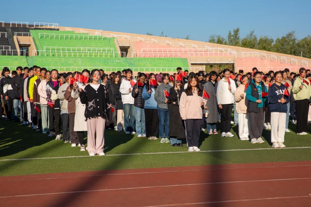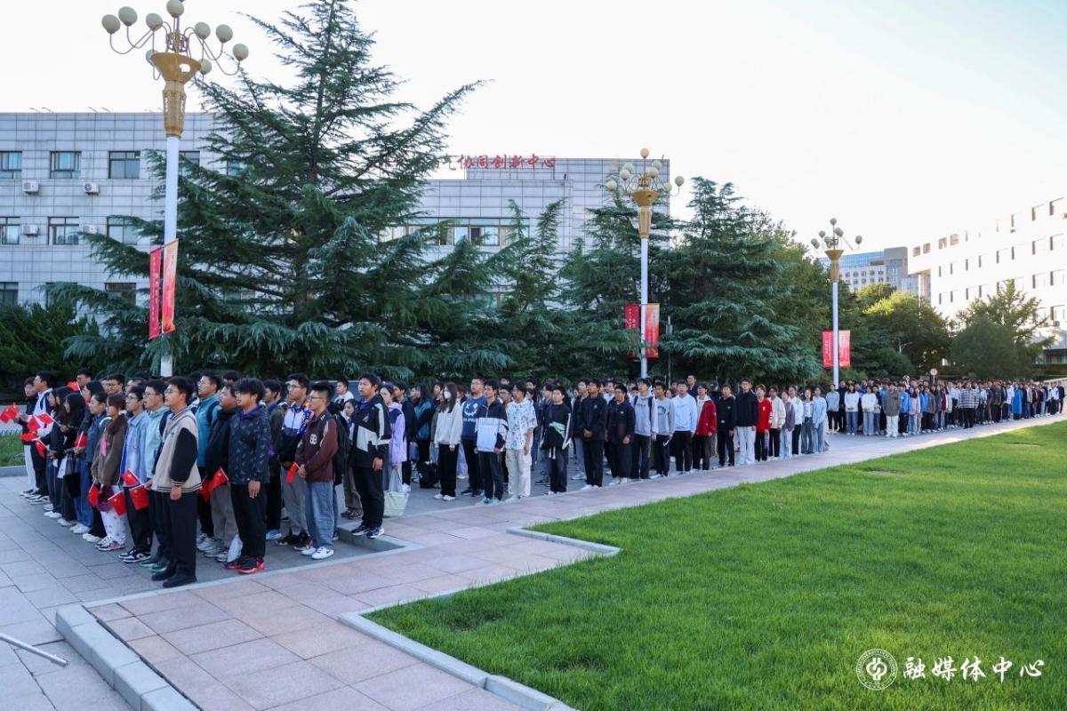 當日清晨,學校在北校門廣場舉行了隆重的升國旗儀式和國旗下的演講活動,進一步弘揚愛黨愛國精神,引領廣大學子樹立為祖國為人民永久奮斗、赤誠奉獻的堅定理想。全體師生齊聲高唱《義勇軍進行曲》和《我和我的祖國》,共同表達對偉大祖國的深情熱愛和誠摯祝福。