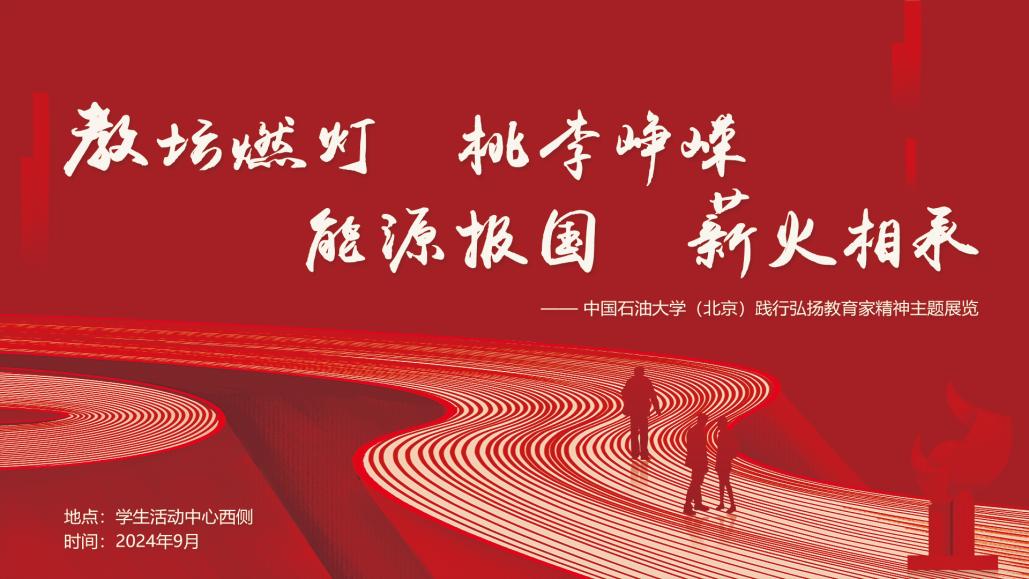 教壇燃燈,桃李崢嶸。為深入貫徹落實習近平總書記關于教育的重要論述,大力弘揚和踐行教育家精神,在迎來第40個教師節的金秋時節,中石大舉辦“教壇燃燈,桃李崢嶸,能源報國,薪火相承”踐行弘揚教育家精神主題展覽。9月10日,主題展覽在學校學生活動中心西側正式開展。