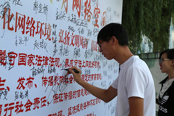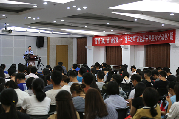 9月19日下午,200余名學生齊聚南廣場,在學生領讀者的帶領下,集體倡議打造文明網絡空間,并在倡議書上簽字。倡議活動結束后,北京市公安局網絡安全保衛總隊偵查員、2016“北京榜樣·最美警察”張敏受邀作了以“想說愛網不容易”為主題的網絡知識講座,為大一新生們講述了電信網絡詐騙的實施過程和防范技巧等內容。各基層團支部還召開了“喜迎十九大 爭做好網民”的主題生活會,對目前網絡不文明現象進行了剖析,并結合自身日常用網習慣對提高網絡安全意識和遵守網絡行為規范進行了交流和探討。
