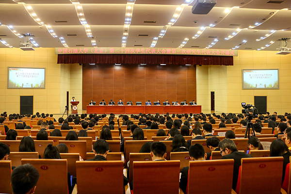大會聽取了《中國石油大學(北京)第二十三屆學生會工作報告》及《中國石油大學(北京)第二十四屆研究生會工作報告》。報告分別回顧了學生會與研究生會過去兩年的工作,并對未來工作作出展望,希望石大學子樹立遠大理想,爭做“四可”青年,為建設石油石化學科領域世界一流研究型大學努力奮斗,為實現中華民族偉大復興的中國夢貢獻力量。