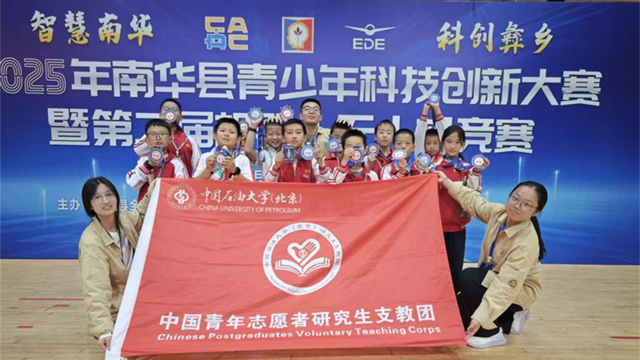 第27屆研支團隊長詹少駒從“教育幫扶”和“志愿服務”兩方面匯報了近期支教成果。在教育幫扶方面,3名成員平均每周授課超14課時,覆蓋學生近900人,其中,馬秀所帶班級學生成績進步顯著;成立無人機機器人社團,指導學生在南華縣青少年科技創新大賽暨第二屆機器人和無人機競賽中,斬獲二等獎5項、三等獎12項。在志愿服務方面,第27屆研支團以暑期社會實踐為契機,助力改善服務地學校教學環境;積極參與“菌子節”“青年夜?!钡戎驹阜栈顒?,展現了中石大青年良好的精神風貌與責任擔當,獲當地群眾與領導的一致好評。此外,詹少駒也進一步剖析了團隊成員在教學經驗、資源整合與品牌建設方面的不足,提出將通過內部培訓、跨校交流等方式持續改進,并計劃增設石油特色愛國主義教育課程,打造區域教育品牌。