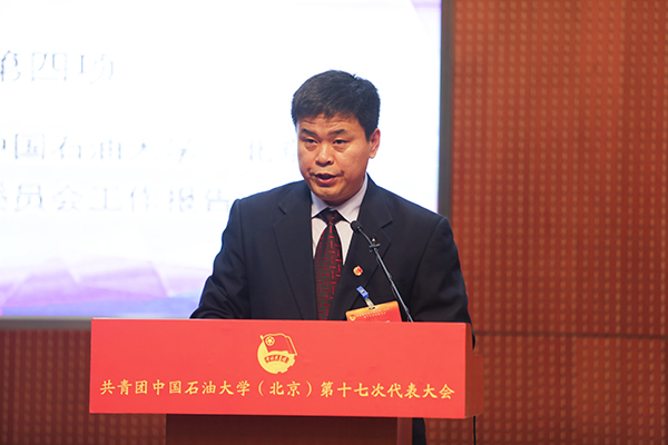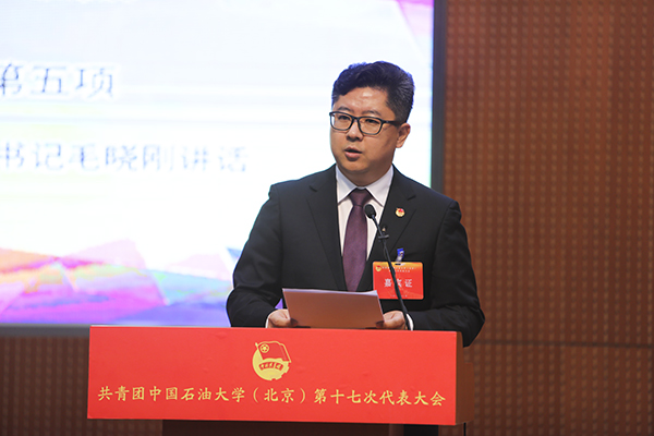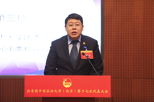 石大團委書記周玉成代表第十六屆委員會向大會作了題為“不忘初心,緊跟黨走,為建設石油石化學科領域世界一流研究型大學貢獻青春力量”的工作報告。報告回顧了過去六年的團學工作,指出六年來學校共青團組織在思想引領、組織建設、創新實踐、校園文化建設工作方面取得了矚目的成果,圍繞“凝聚青年、服務大局、當好橋梁、從嚴治團”四維工作格局,團結帶領全校廣大青年不忘初心、緊跟黨走。報告對共青團今后五年的工作進行了部署和展望。報告指出,未來五年石大共青團工作將以《中共中國石油大學(北京)委員會關于進一步加強和改進共青團工作的若干意見》為統攬,圍繞一個根本任務,聚焦兩大陣地,完善三個平臺,筑牢四大基石,團結帶領全校廣大青年不忘初心,牢記使命,向著把學校建設成為石油石化學科領域世界一流研究型大學的宏偉目標不懈奮進。