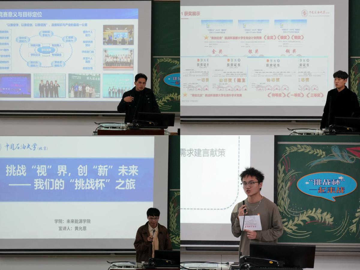 “挑戰杯”中國大學生創業計劃競賽作為國內最具影響力的大學生創新創業賽事之一,在激發青年創新潛能、服務高校素質教育、助力經濟社會發展等方面發揮重要作用。下一步,校團委將聯合創新創業教育學院分層分類開展“挑戰杯”備賽系列培訓和校賽選拔工作,教育引導廣大中石大學子以青春之筆書寫科技創新的新篇章。