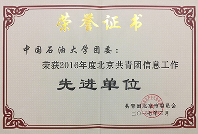 3月22日,共青團北京市委員會發布了《關于表彰2016年度北京共青團信息工作先進單位和先進個人的決定》,石大團委榮獲“2016年度北京市共青團信息工作先進單位”稱號。全市共25家各級團組織獲此榮譽。