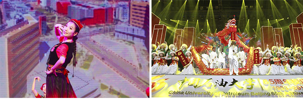 第四篇章“新時代征程再譜新篇”以中國石油大學時期為背景,全面呈現了中國石油大學作為石油人才的搖籃,在人才培養和服務國家能源戰略方面取得的累累碩果。克拉瑪依校區同學們表演的舞蹈《美麗的克拉瑪依姑娘》以優美的旋律、曼妙的舞姿演繹了石大學子的青春朝氣。留學生表演的歌舞《絲路歡歌》,用獨具民族特色的歌舞展現了別樣的民族風情和異域文化,體現了石大在服務國家“一帶一路”建設中的辦學成果。