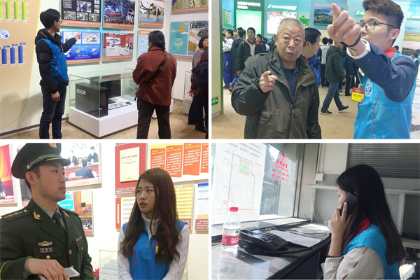 志愿服務中,石大志愿者在展廳入口和十一個展區(qū)負責現(xiàn)場觀眾的接待和引導、翻譯講解展覽內(nèi)容、發(fā)放紀念冊和門票等工作,并積極協(xié)助現(xiàn)場工作人員為參觀者提供優(yōu)質(zhì)的參觀保障。此外,部分志愿者承擔了話務員工作,為詢問成就展相關事宜的群眾電話答疑解惑,累計接聽咨詢電話百余次。志愿服務過程中,石大志愿者弘揚“奉獻、友愛、互助、進步”的志愿精神,以飽滿的服務熱情和高水平的服務質(zhì)量充分展示了石大志愿者的風采。