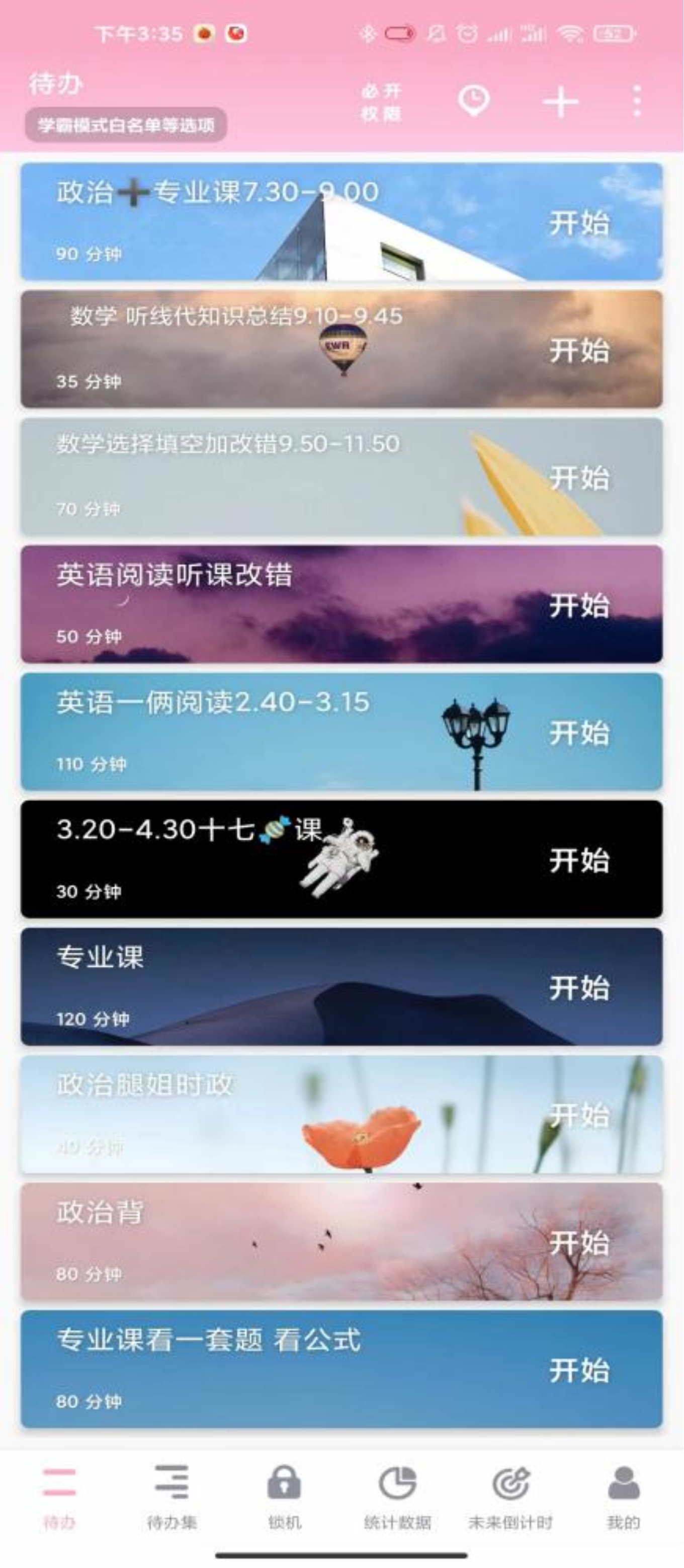 2.要每天制定自己的學習安排,按學習安排走,不要沒有目標一盤散沙。可以用一下番茄TODO這個軟件。