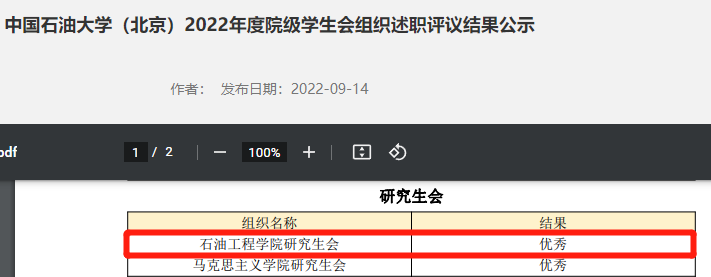 為黨的二十大獻禮--石油工程學院研究生會介紹:石油工程學院研究生會是在學院黨委領導和學院團委指導下,以促進研究生全面發展為目標,以“代表和維護全體研究生利益,全心全意為全體研究生服務”為宗旨的研究生組織。26屆石工研會共有成員34人,其中黨員18人,積極分子11人。近日,在中國石油大學(北京)團委組織開展的2022年度院級學生會組織述職評議中,石工研會以研究生會組第一名的成績,首次獲得中國石油大學(北京)“優秀研究生會”稱號。