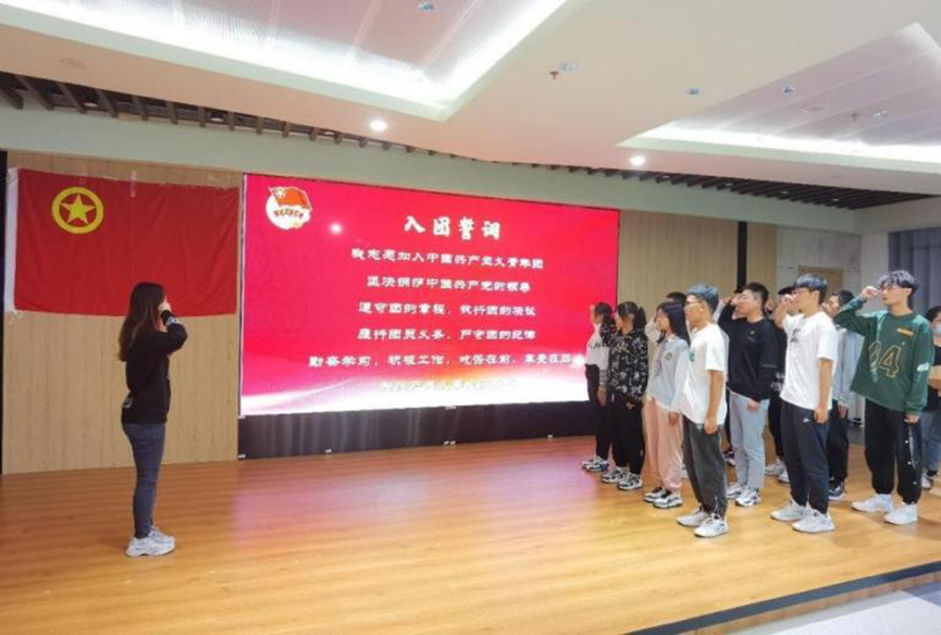 隨后,由團員代表劉思彤帶領全體團員重溫入團誓詞儀式,熟悉又莊嚴的誓詞提醒著在場的每一位團員,銘記團員使命,不忘入團初心。宣誓結束后,信息學院團委委員蘇星源進行團校管理規定教育,詳細介紹了培訓內容、考核方式和紀律要求。