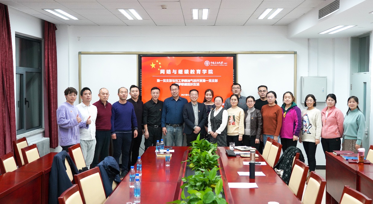 2021年12月2日下午,網絡與繼續教育學院第一黨支部與石工學院油氣田開發第一黨支部在東教802會議室聯合開展12月份黨支部組織生活和政治理論學習,會議由網絡與繼續教育學院第一黨支部組織委員張敏同志主持,共計25名黨員和積極分子參加。
