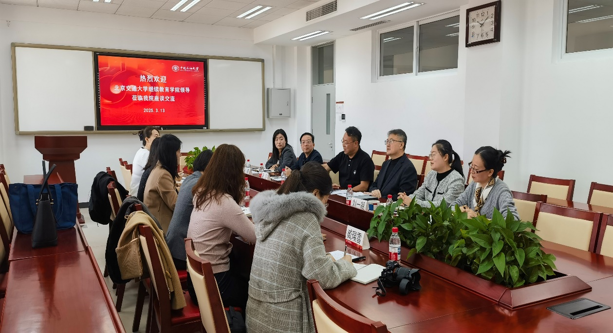 2025年3月13日,北京交通大學繼續教育學院黨總支書記繩麗惠一行6人蒞臨我院訪問,雙方就繼續教育發展開展深入交流。學院黨總支書記、院長陳春茂等相關人員參加座談。