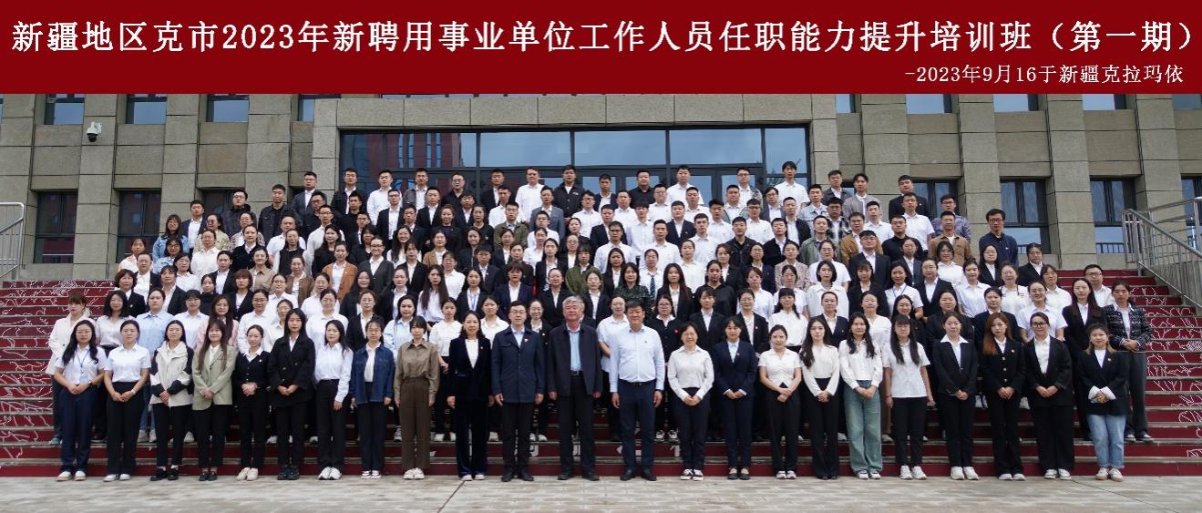 9月16日,由中國石油大學(北京)承辦的新疆地區克拉瑪依市2023年新聘用事業單位工作人員任職能力提升培訓班(第一期)順利開班。新疆地區克拉瑪依市人社局黨組成員副局長張立群,中國石油大學(北京)網絡與繼續教育學院院長陳桂剛,天山研究院副院長校區黨群工作部主任能源教授出席開班儀式。來自克拉瑪依市2023年新聘用的174名事業單位工作人員參加本次培訓。