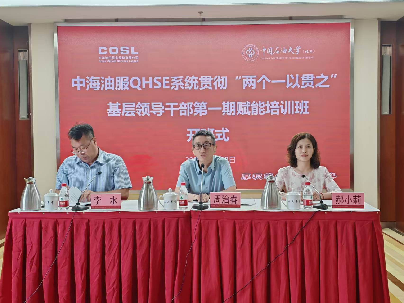 2024年8月12日,由我校承辦的中海油服QHSE系統(tǒng)貫徹“兩個一以貫之”基層領導干部第一期賦能培訓班順利開班。中海油田服務股份有限公司質量安全部總經(jīng)理周治春、中國石油大學(北京)網(wǎng)絡與繼續(xù)教育學院副院長李水出席開班式并講話,網(wǎng)絡與繼續(xù)教育學院高層次發(fā)展中心主任郝小莉主持開班式。