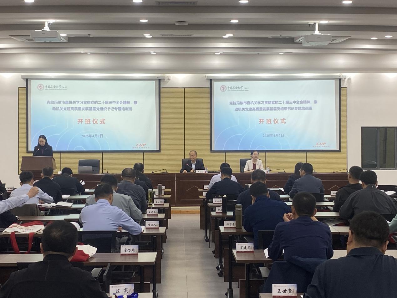 2025年4月7日,克拉瑪依市直機(jī)關(guān)“學(xué)習(xí)貫徹黨的二十屆三中全會(huì)精神,推動(dòng)機(jī)關(guān)黨建高質(zhì)量發(fā)展”基層黨組織書(shū)記專題培訓(xùn)班在中國(guó)石油大學(xué)(北京)克拉瑪依校區(qū)隆重開(kāi)班。來(lái)自市委直屬機(jī)關(guān)工委、市信訪局、市委宣傳部等克拉瑪依市60個(gè)單位的基層黨組織書(shū)記參加此次培訓(xùn)。