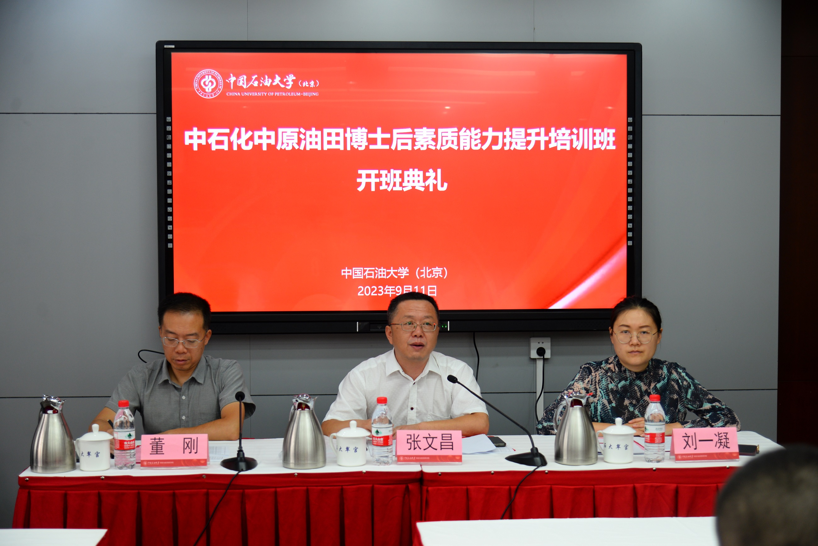 2023年9月11日,中石化中原油田博士后素質(zhì)能力提升培訓(xùn)班順利開班。中原油田首席專家、科技信息部經(jīng)理張文昌,中國石油大學(xué)(北京)網(wǎng)絡(luò)與技術(shù)教育學(xué)院副院長劉一凝出席開班典禮。