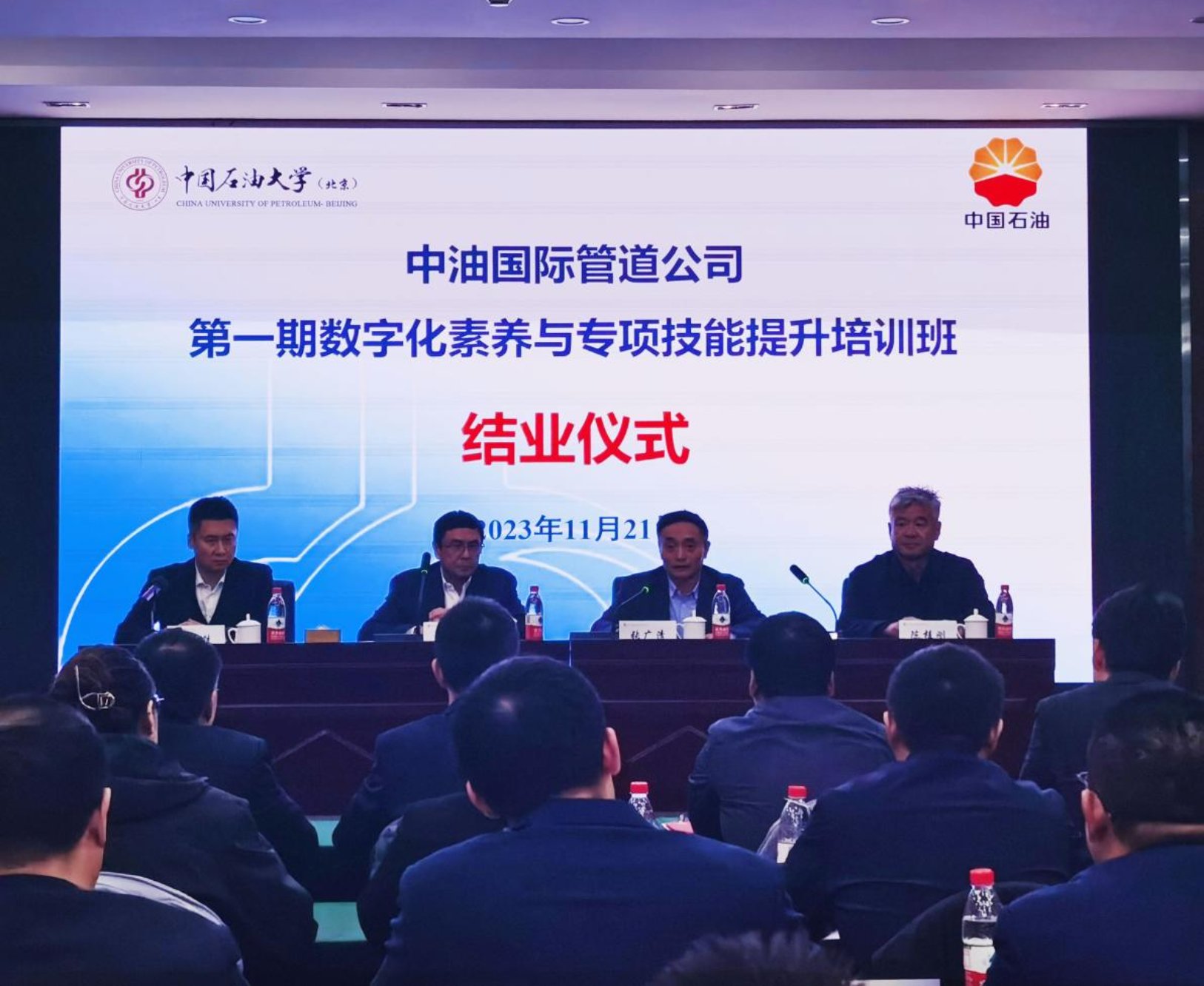 11月21日下午,中油國(guó)際管道公司第一期數(shù)字化素養(yǎng)與專項(xiàng)技能提升培訓(xùn)班在鳳山培訓(xùn)基地舉行結(jié)業(yè)儀式。中油國(guó)際管道公司執(zhí)行董事、黨委書記鐘凡,中油國(guó)際管道公司信息中心主任王鐵,中國(guó)石油大學(xué)(北京)副校長(zhǎng)張廣清和網(wǎng)絡(luò)與繼續(xù)教育學(xué)院院長(zhǎng)陳桂剛出席結(jié)業(yè)式并講話。