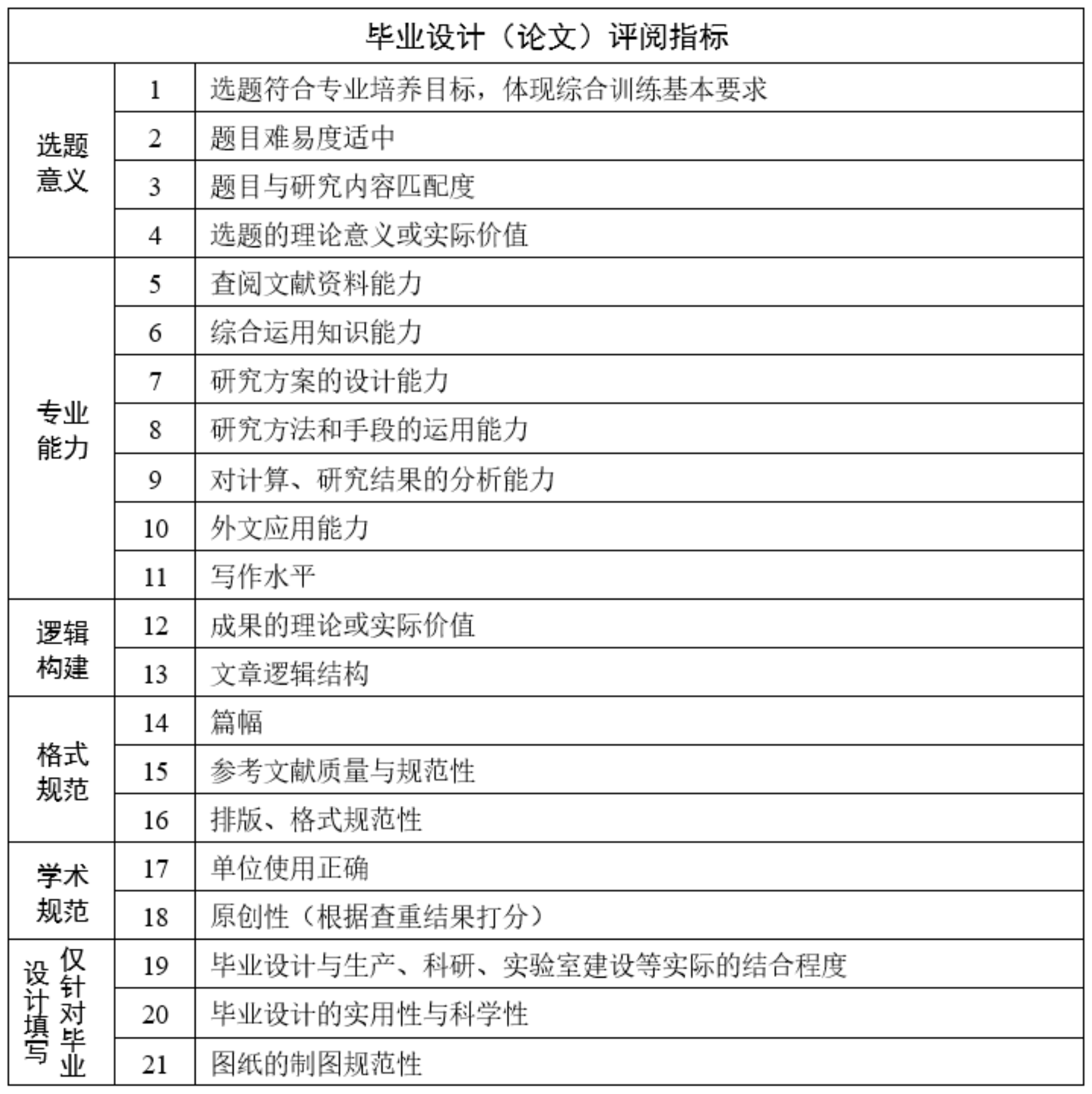 學(xué)院已聘請(qǐng)專家對(duì)學(xué)生論文進(jìn)行了全面評(píng)審,請(qǐng)學(xué)生按照論文中的批注、《畢業(yè)設(shè)計(jì)(論文)評(píng)閱指標(biāo)》(下圖)和《論文模板》(附件2)修改論文;論文中無批注的同學(xué)按照《畢業(yè)設(shè)計(jì)(論文)評(píng)閱指標(biāo)》和《論文模板》完善論文。