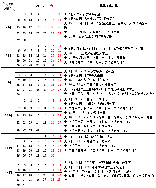 自選課提交成功后,同學即可進入平臺開始2024年秋季學期的課程學習。請同學們參照學院各項工作安排(見下表或附件),妥善處理好工作和學習。