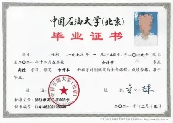 學生在規定學習年限內修滿教學計劃規定的學分,達到畢業要求的,由學校頒發國家承認的中國石油大學(北京)成人高等教育畢業證書,并在教育部學信網電子注冊;符合學校學位授予條件的,可申請獲得學士學位。